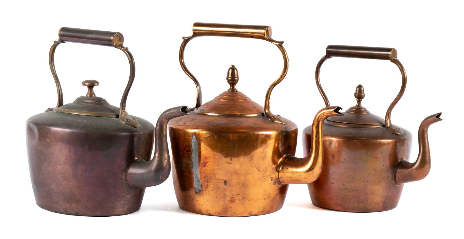 THREE COPPER TEA KETTLES