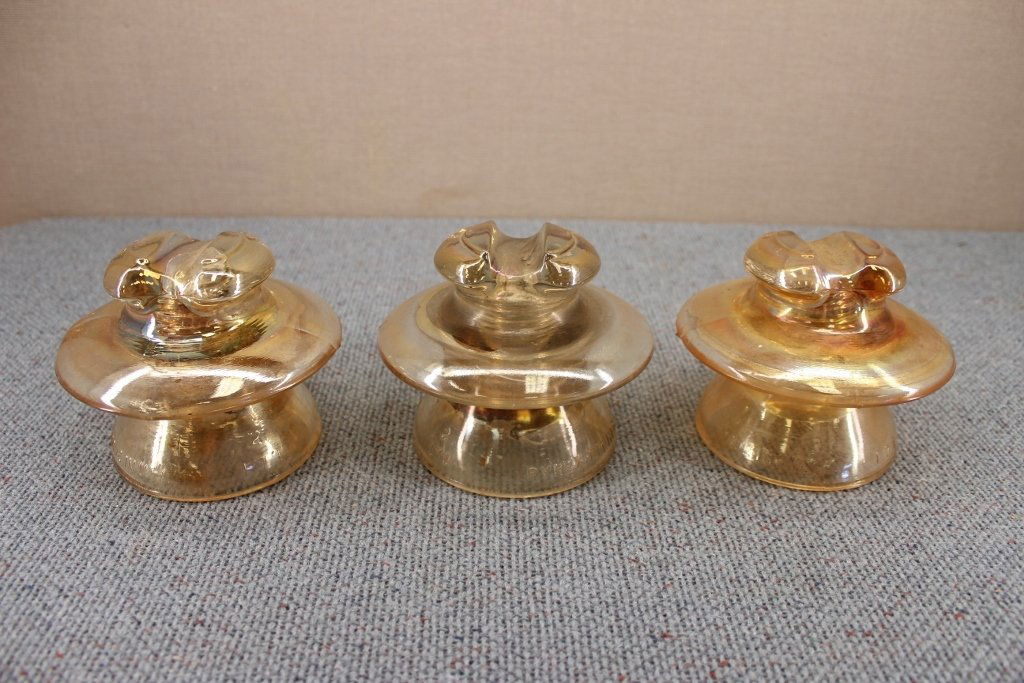 Three Corning Pyrex Marigold Glass Insulators