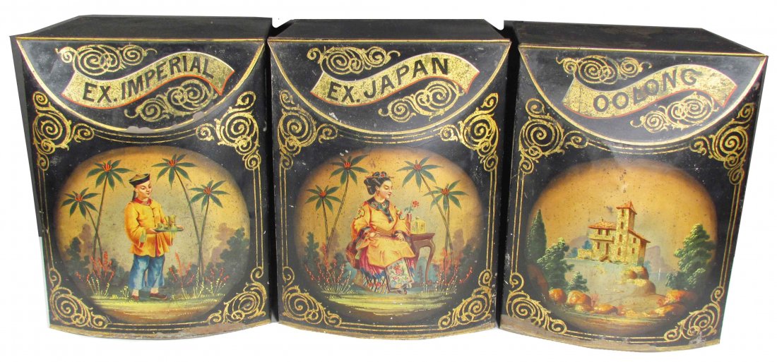 Lot 6 19th C Lithographed Tin Christmas BoxesMar 07, 2026Lot of Three Signed Russian Palekh Jewelry Boxes17 hrs LeftLot of Four French Enameled Table Boxes17 hrs LeftTobacco Advertising Tin Lot Inc. Prince Albert, Tuxedo, Rex, Cinco, Oceanic and MoreMar 02, 2026Two Vintage Scenic Tin Boxes LotFeb 28, 2026(5) JAPANESE BLACK LACQUER PAINTED TABLE BOXESFeb 21, 2026(4) PAINTED TOLE TEA CANISTERS, 2 NOW FASHIONED AS TABLE LAMPSFeb 21, 2026(4) JAPANESE LACQUERED TABLE BOXES, 1 WITH MOP INLAYFeb 20, 2026Vintage Floral & Cottage Tin Box PairFeb 28, 2026English Tea Tins7 days LeftTwo Vintage Fruit-Decorated Tin BoxesFeb 28, 2026PAIR OF ORIGINAL COUNTRY STORE PRODUCT CRATESFeb 19, 2026COLLECTION OF 10: COUNTRY STORE SPICE TINSFeb 19, 2026(3) VINTAGE TOBACCO & SPICE TINS, LATE 19TH–EARLY 20TH CENTURYFeb 22, 2026PAIR OF COUNTRY STORE TINSFeb 19, 20263 Chinese Tea Caddy's - 5 1/2" X 7 3/4" W X 5 1/2" D, 5 1/2" X 8" W X 5" D + 5" H X 6 3/4" W X 5" D274 Lots Away