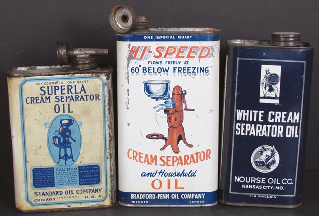 Three Cream Separator Oil Tins