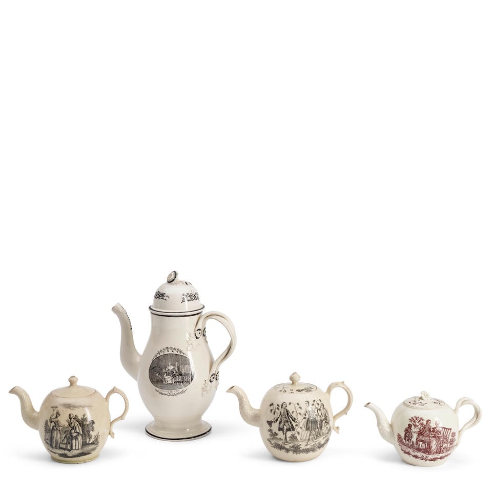 THREE CREAMWARE TEAPOTS AND A COFFEEPOT
