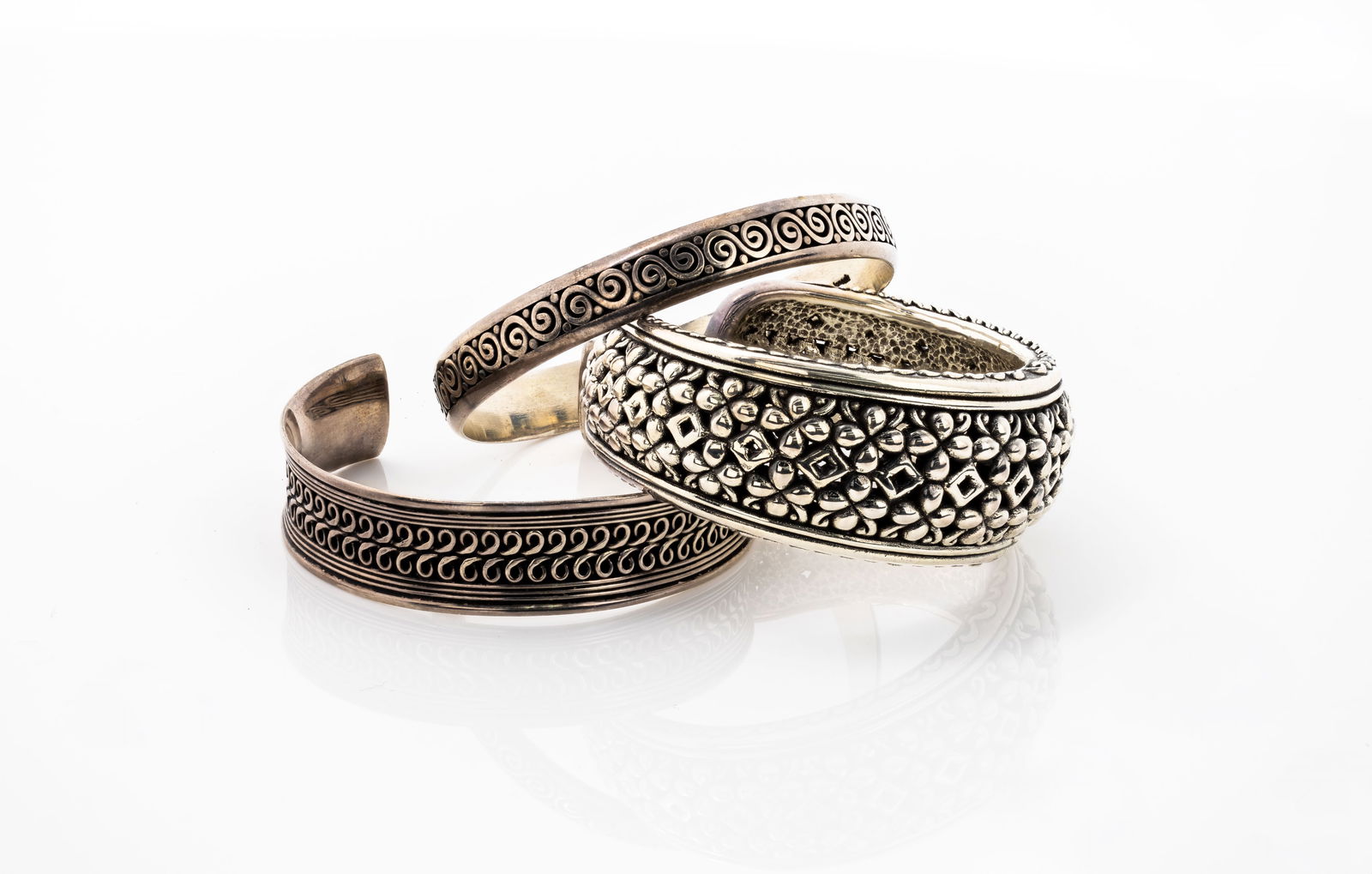 THREE CUFF BRACELET SET 925 STERLING SILVER, INDONESIA