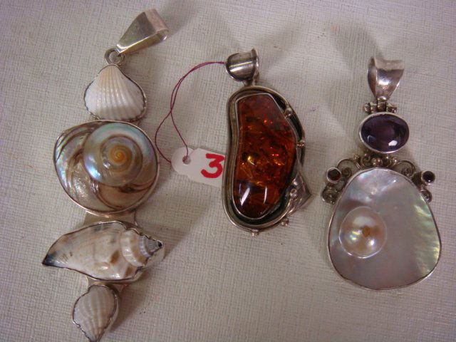 Three Custom Handmade Silver/Stone Slide Pendants: