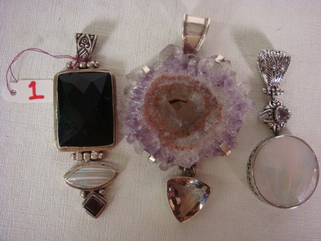 Three Custom Made Silver & Amethyst Slide Pendants: