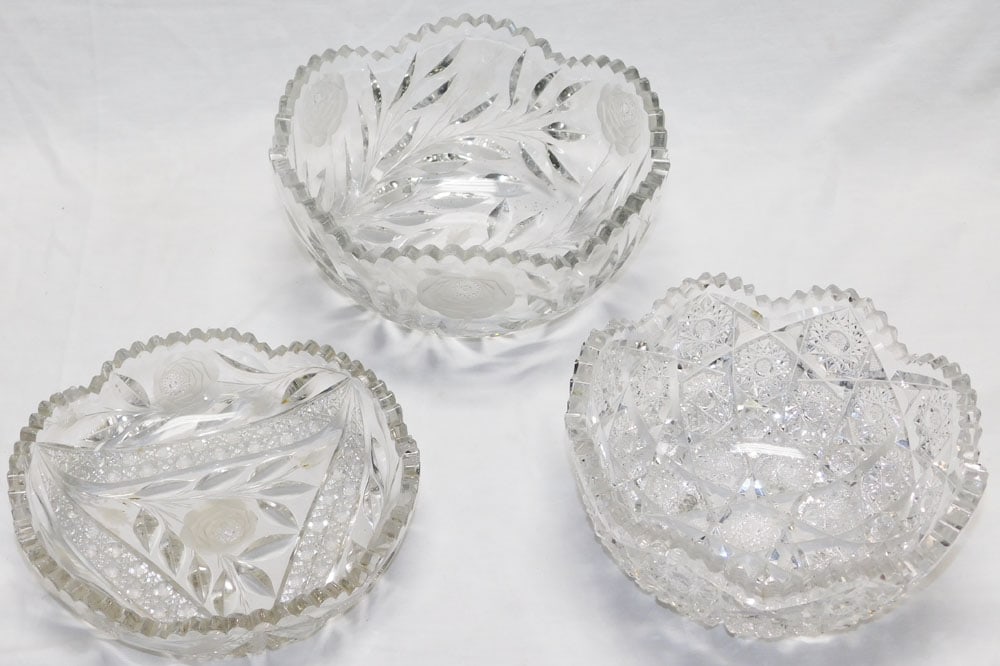 Three Cut Glass Bowls
