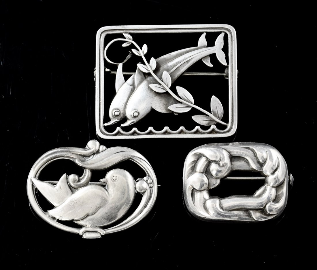 Lot of 4 Victorian silver pins. Largest: 2.75in wide. 0.5 ozt.Mar 01, 2026Lot of 5 Silver Jewelry PinsMar 05, 2026STERLING SILVER JEWELRY LOT2 days LeftGeorg Jensen ( Danish 1866-1935) Sterling Silver Collection Earrings Brooch etc2 days LeftGeorg Jensen, Denmark. 3 Sterling silver pins. Foliate and bead, #88, Swan #213B, and a floralMar 01, 2026Georg Jensen, Denmark. 3 Sterling silver pins. Open work blossom, #236A, Jugendstil TulpenbroscheMar 01, 2026Georg Jensen, Denmark. 2 Sterling silver brooches. Floral blossom, #97, tri-foliate and berry #20,Mar 01, 2026Georg Jensen Dolphin Motif Cufflinks and Matching Tie Tack Set in Sterling SilverMar 04, 2026Georg Jensen, Denmark. 4 Sterling silver pins. Heart shaped, #44, heart shape with vines #242B, decoMar 01, 2026Square" Georg Jensen. Malinowski Sterling Silver Brooch "Dolphin19 hrs LeftGeorg Jensen, Denmark. 2 Sterling silver brooches. Foliate and blossom wreath, #42 and tri-foliateMar 01, 2026VINTAGE GEORG JENSEN STERLING SILVER DOLPHINS CUFFLINKS 129Mar 19, 2026Georg Jensen, Denmark. 3 Sterling silver pins. Scrolled blossom, #56, blossom #186, and blossom withMar 01, 2026Georg Jensen, Denmark. 5 Sterling silver brooches. Floral blossom, #31, foliate and bead, #71, ovalMar 01, 2026VINTAGE GEORG JENSEN STERLING SILVER ROUND HORSE CUFFLINKS & PIN BOX 63Mar 19, 2026Georg Jensen, Denmark. 3 Sterling silver brooches. Foliate and berry, #20, bead and blossom #50 andMar 01, 2026