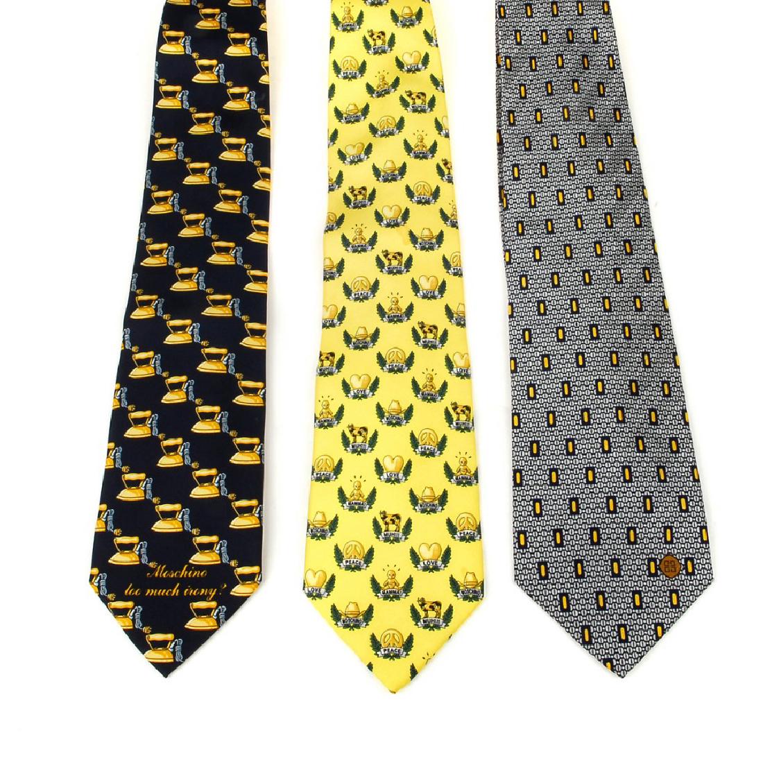 Three designer ties. To include two Moschino ties and a