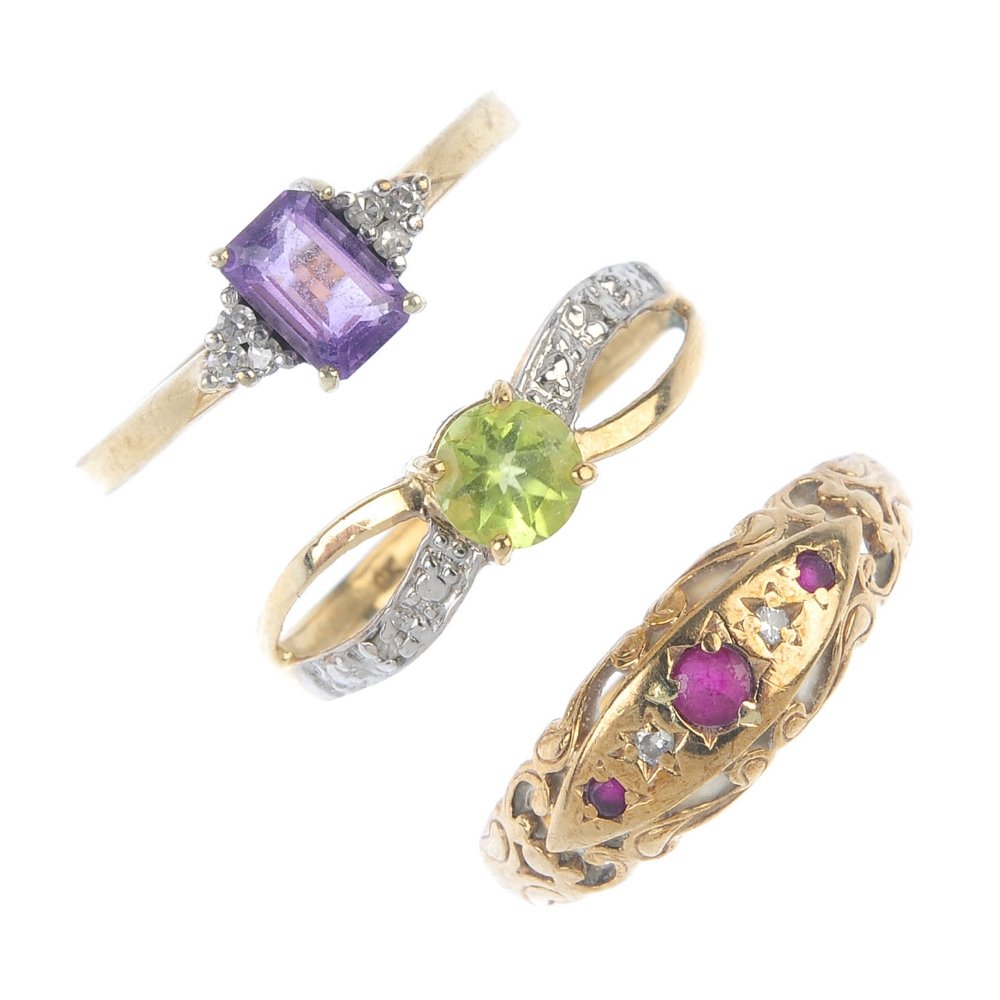 Three Diamond Accent Gem Set Rings. To Include A 9ct