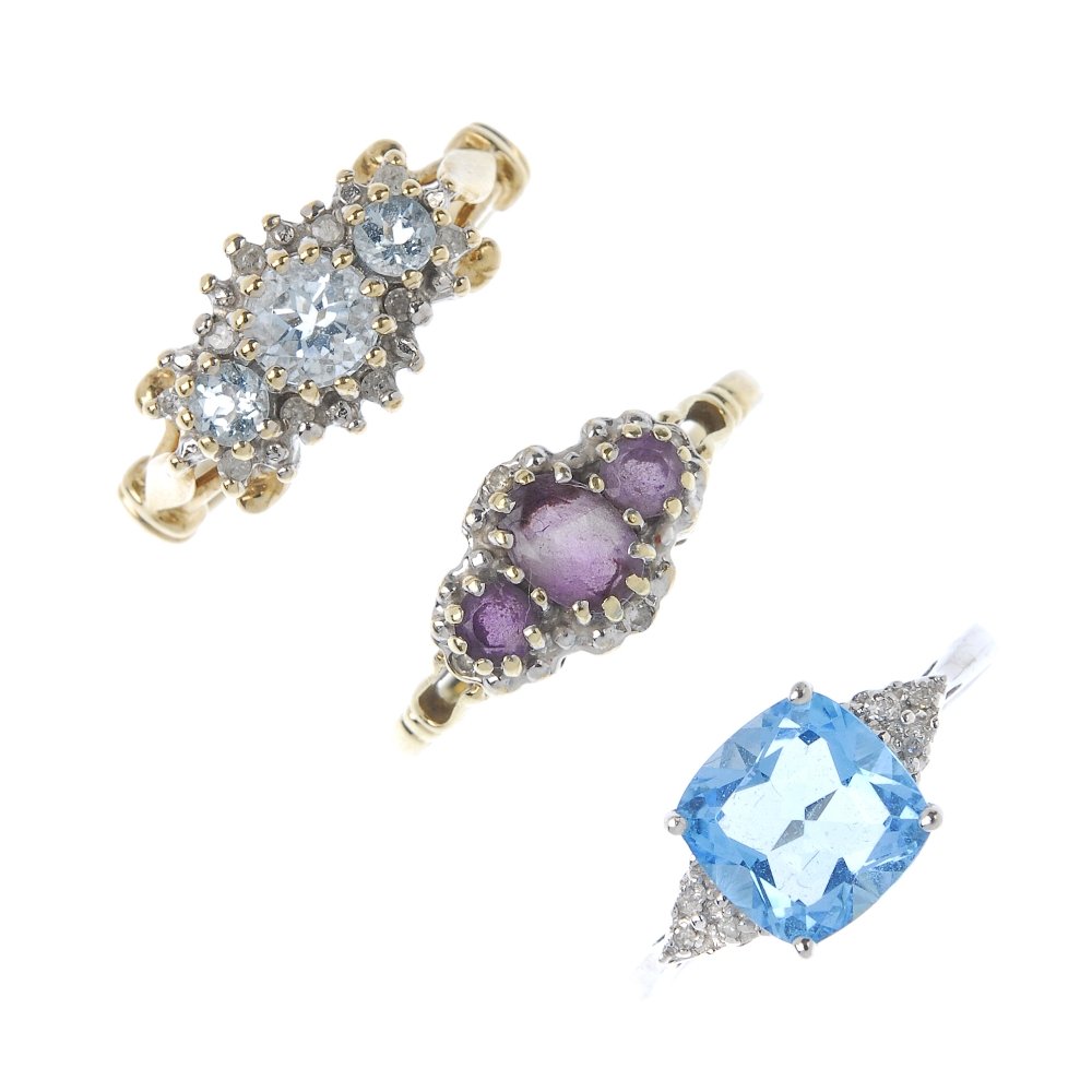 Three diamond and gem rings.