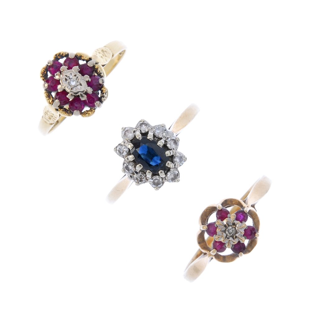 Three diamond and gem-set cluster rings.
