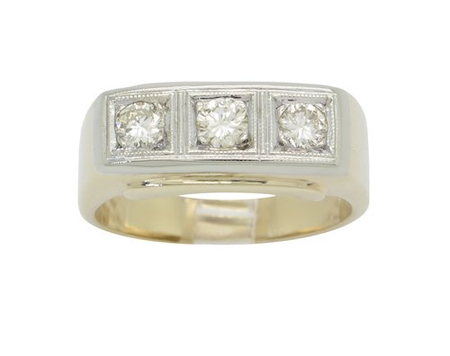 THREE DIAMOND MENS 14K GOLD RING