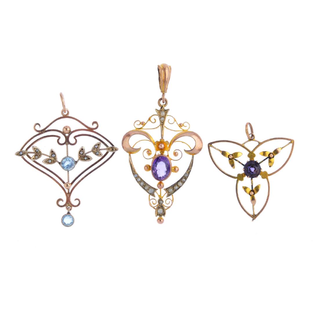 Three early 20th century gem-set pendants. To include