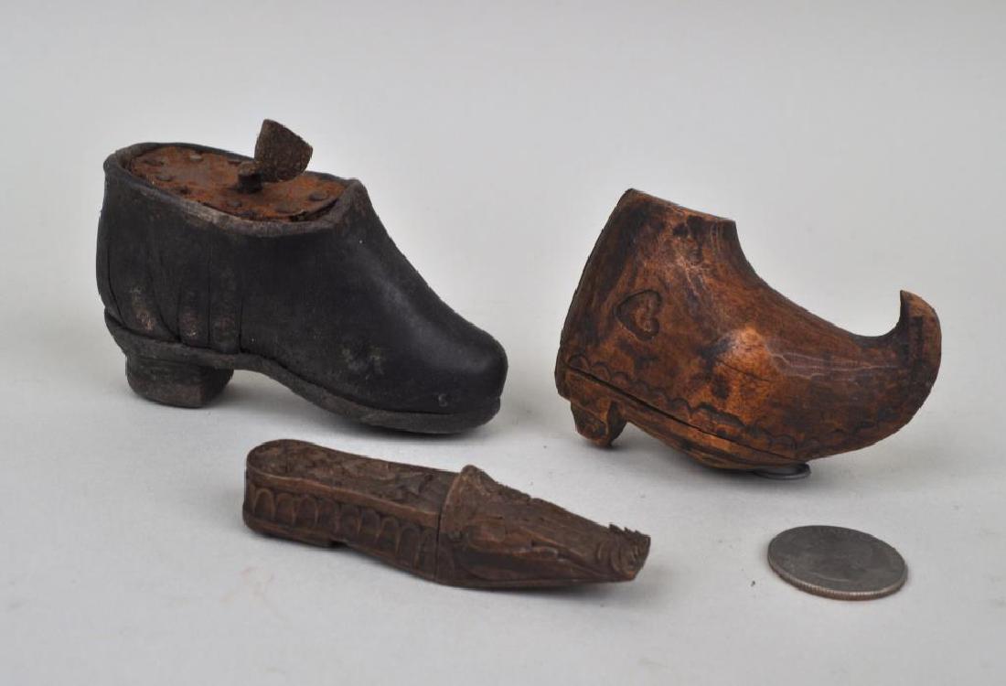 Three Early Continental Shoe Form Snuff Boxes