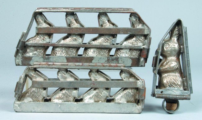 Three Easter Bunny Chocolate Molds, pressed tin st