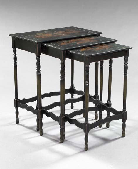 Chinoiserie Glass & Red Lacquer Nesting Tables, 3May 07, 2026Elegant Set of Three Campaign Style Mirrored Nesting Tables France1 day LeftSet of Three Burl Wood Marquetry Nesting Tables with Glossy Finish3 days LeftT.H. Robsjohn-Gibbings, Widdicomb, Mid-Century Modern Nesting Tables, USA, 1950sVintage Rattan Nesting Tables Set of 3 Boho Accent TablesApr 16, 2026Jacques Adnet, French Mid-Century Modern, Nesting Tables, Leather, Brass, 1950sVintage Regency Set of 3 Hand-Painted Nesting TablesApr 17, 2026Trio of French Brass and Glass Nesting Tables in Bagues StyleApr 19, 2026Robsjohn Gibbings Nesting Tables6 days LeftSet of 3 French Brass Glass Nesting Tables in Neoclassical Louis XVI Design5 days LeftAfter Maison Jansen Pair of Side Tables Together6 days LeftButler Contemporary Iron and Brass Carrara Marble Nesting Tables3 hrs LeftJohn-Richard Gold Leaf Acrylic Nesting Tables Set3 hrs LeftChinese Black Lacquer MOP Inlaid Side Tables 3pcsApr 16, 2026Italian Precious Woods Marquetry Set of 3 Nesting Tables With a Music Box in the Smallest TableHollywood Regency Chrome & Brass Maison Jensen Style Nesting Tables
