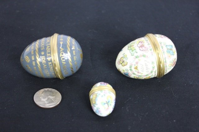 Lot: Limoges, Nippon, Assorted Porcelain.2 hrs LeftLOT OF VINTAGE JAPANESE HAND PAINTED PORCELAIN EGGS449 Lots AwayLot Of Three Vintage Russian Lacquered Paper Mache Round Boxes52 mins LeftLot of Lacquer Easter Eggs1 day LeftPair Deco Eggs W Rabbit Motif on Wood Stands4 days LeftLOT OF 3 PORCELAIN PILL BOXES2 days LeftLot of 2 Decorative Real EggsMar 08, 2026Bernardaud Limoges Borghese Vase Box & Egg 7pc LOTMar 11, 2026Wooden & Glass Eggs ~ Nesting & Boxes5 hrs LeftPair Enameled & Rhinestone Trinket Bx W Stand4 days Left5 Halcyon Days Enamel Pill Boxes & Miniature ClockMar 12, 2026Jay Strongwater Style Jeweled Trinket Boxes 4pcsMar 12, 2026Danish studio ceramicist. Two egg-shaped unique ceramic sculptures. Divided into two parts.Four Limoges porcelain boxesMar 10, 2026Limoges Painted Porcelain Trinket Boxes, 13Mar 12, 2026Enamel Egg Form Trinket BoxMar 08, 2026