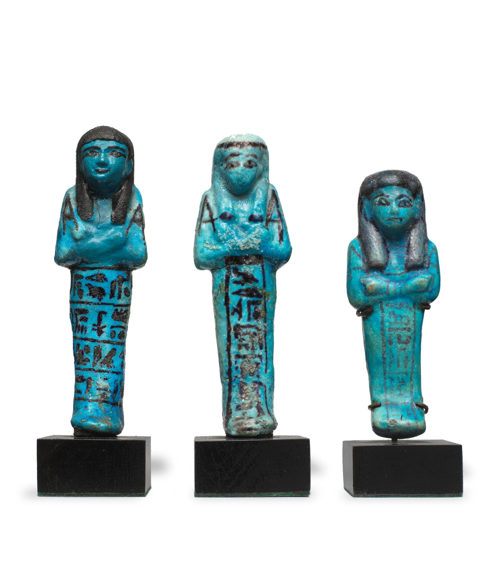 THREE PRIMITIVE STONE CARVINGS, ETC.Mar 07, 20263 Egyptian Ushabti figures. Turquoise glazed. Wear to surface on 2. Tallest 5in. Provenance: From aMar 01, 20262 Egyptian faience turquoise glazed ushabti. 1) 7.5in high. 2) 6in high. Both with wear. Provenance:Mar 01, 2026Egyptian Faience Ushabti & Amulets, 4Apr 14, 2026Egyptian Turquoise Blue Faience Shabti with Hieroglyphic InscriptionMar 04, 2026Egyptian Faience Shabti CollectionMar 04, 2026Egyptian Faience Shabti GroupMar 04, 2026Egyptian Deep Blue Faience Shabti with Hieroglyphic InscriptionMar 04, 2026Egyptian Faience Triad AmuletMar 04, 2026Egyptian Pale Green Glazed Faience Shabti Fragment with HieroglyphsMar 04, 2026Egyptian Blue Glazed Faience ShabtiMar 04, 2026Egyptian Faience Bastet Cat Amulet CollectionMar 04, 2026Egyptian Faience Amulet CollectionMar 04, 2026Egyptian Faience Amulets (6)Feb 27, 20263 Egyptian items. 1) Seated green glazed figure. 4.5in high. 2) Small black stone carved head withMar 01, 2026Egyptian Stone and Faience God Sculptures16 hrs Left