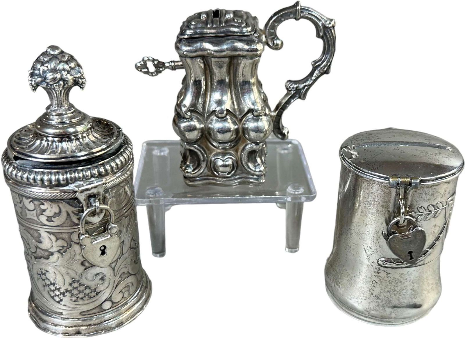 THREE ELABORATE SILVER PLATED SB
