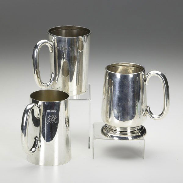 THREE ENGLISH SILVER PINT MUGS