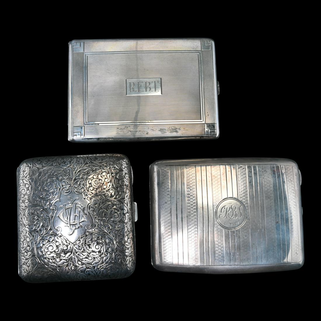 Three English Sterling Silver Cigarette Cases.