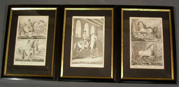 Three equestrian prints, 18th/19th c. 14"x9" ea.