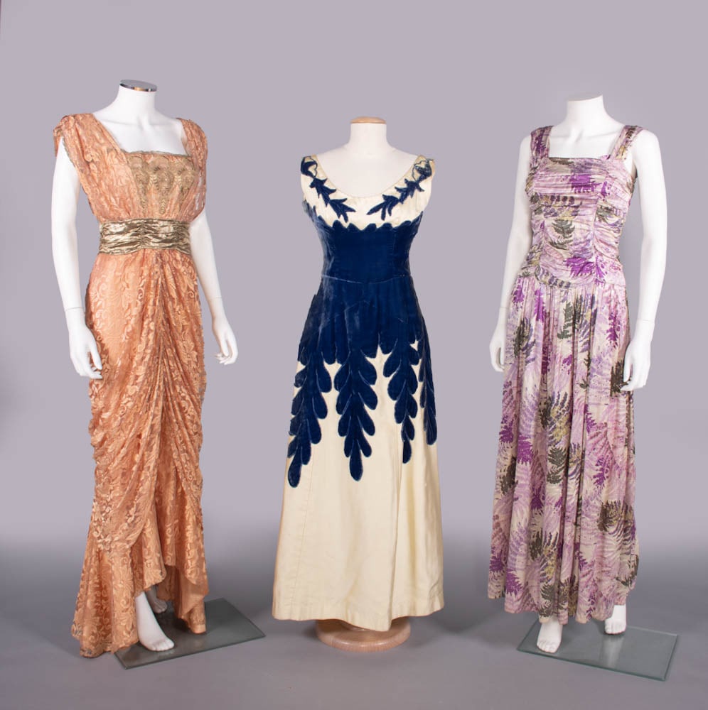 THREE EVENING OR THEATRICAL DRESSES, 1940s