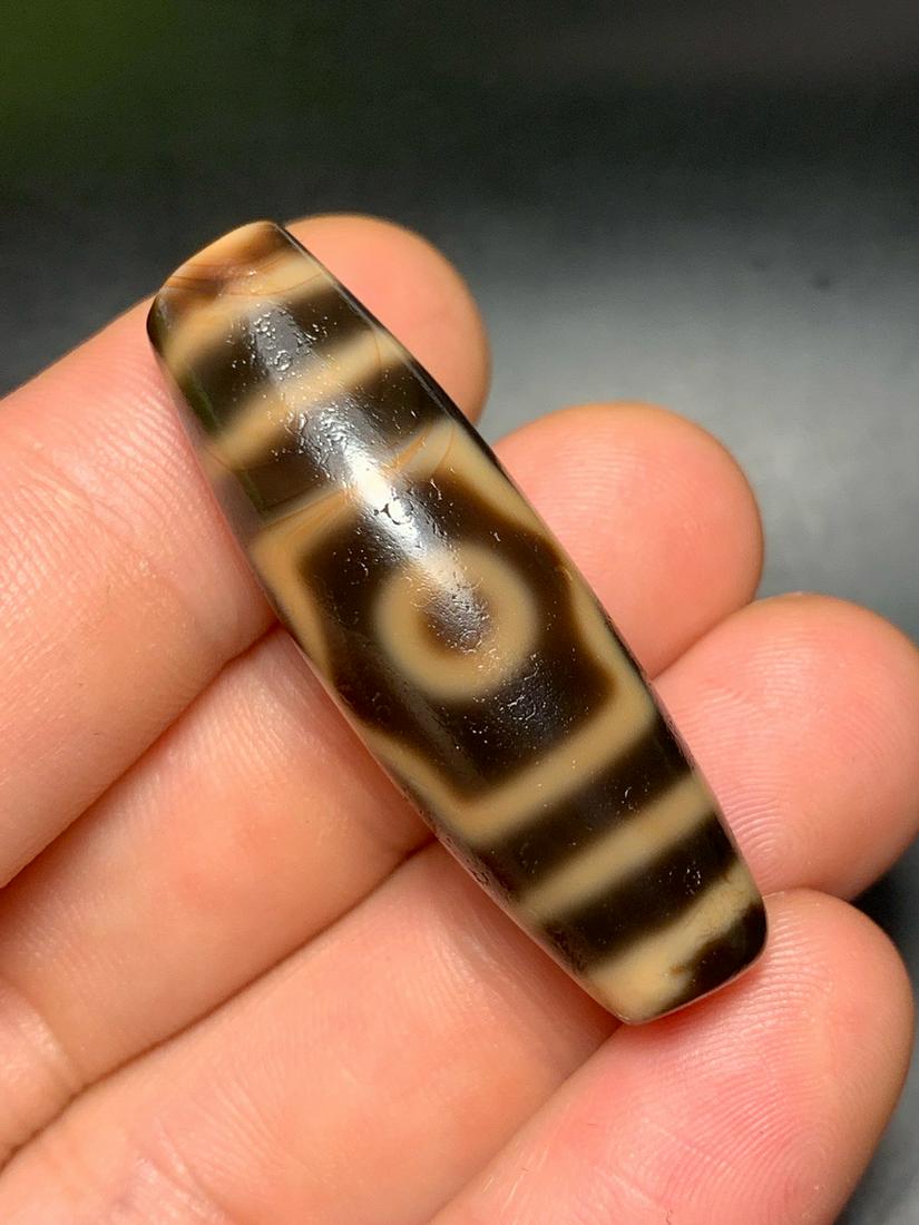 An Exquisite Three Eyes Dzi Bead Pendant
