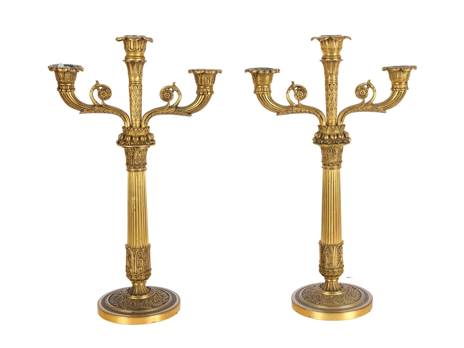 Three-flame candlestick, pair, Charles X. style, cast
