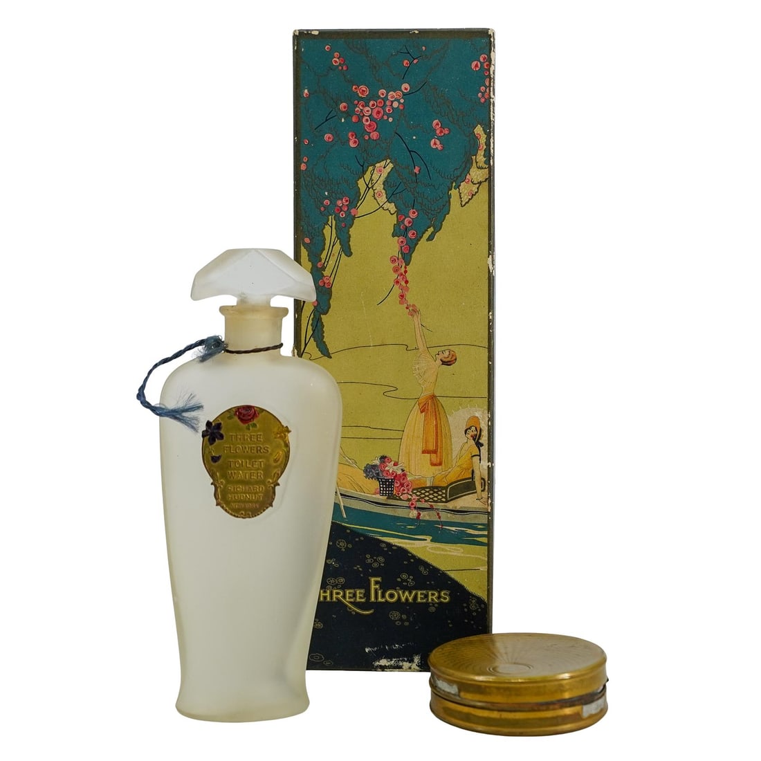 Three Flowers Glass Perfume Bottle & Compact