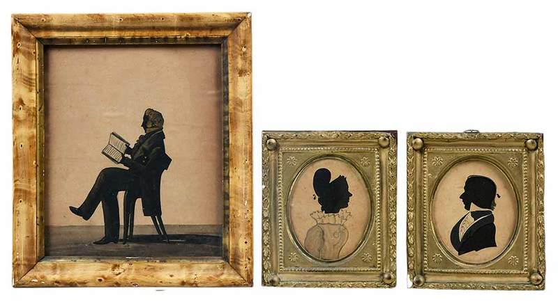 SoldGroup Three Period Framed Silhouetteswith stains, toning. Largest: 10 1/2" high, 8 1/2" wide.See Sold Price