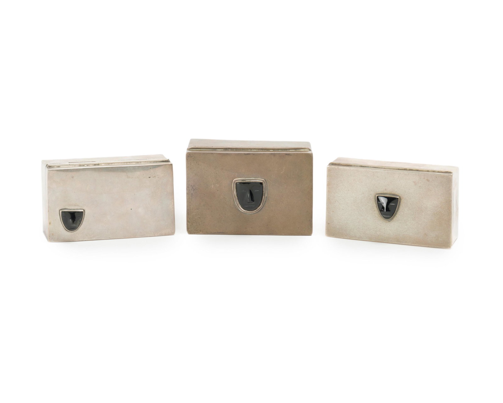 Three Fred Davis silver and obsidian boxes