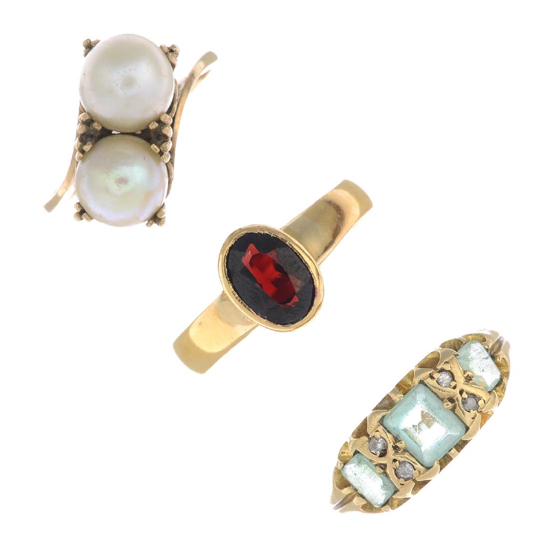 Three gem-set and diamond rings. To include a mid 20th