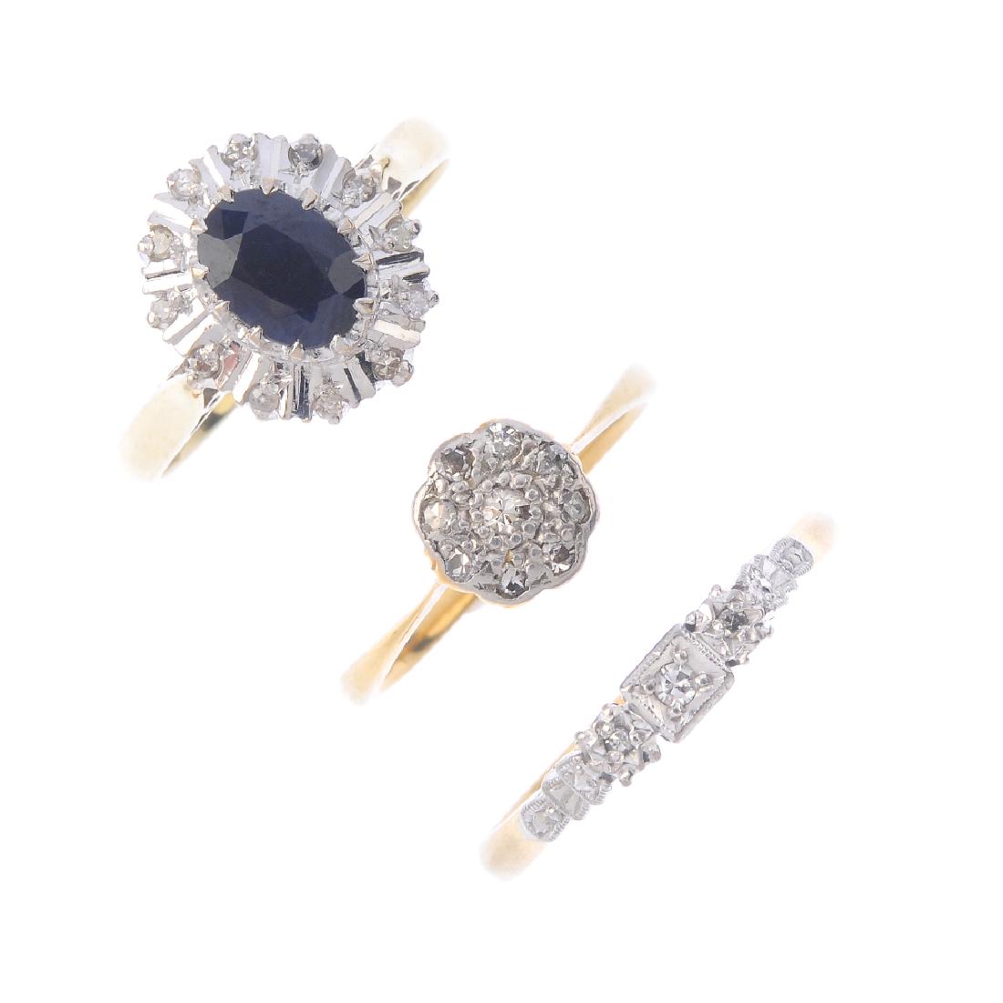 Three gem-set and diamond rings. To include an 18ct
