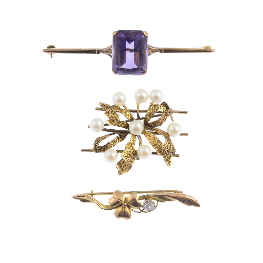 Three gem-set brooches. To include an amethyst