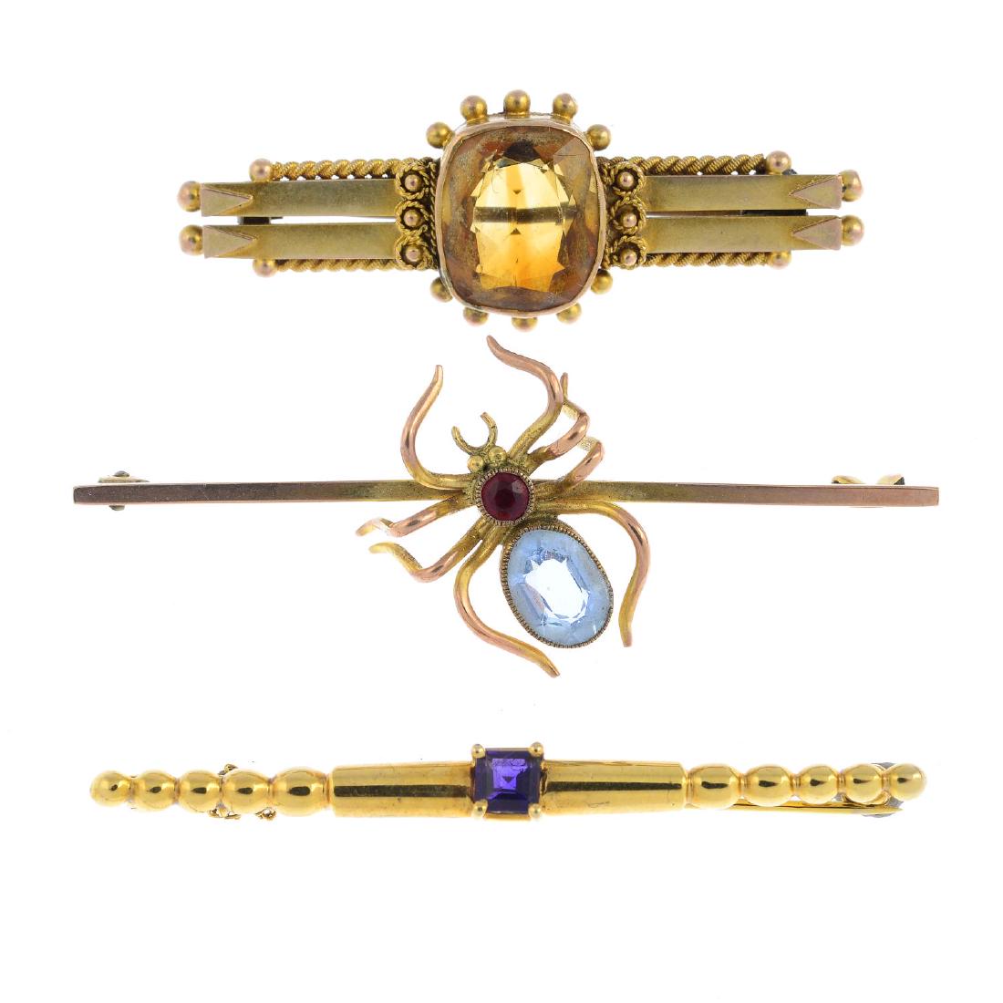 Three gem-set brooches. To include an Edwardian 9ct
