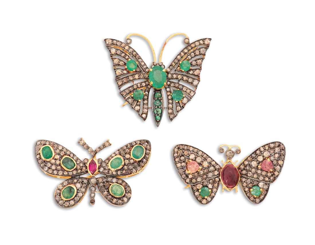 Three Gem-Set Butterfly Pendants/Brooches