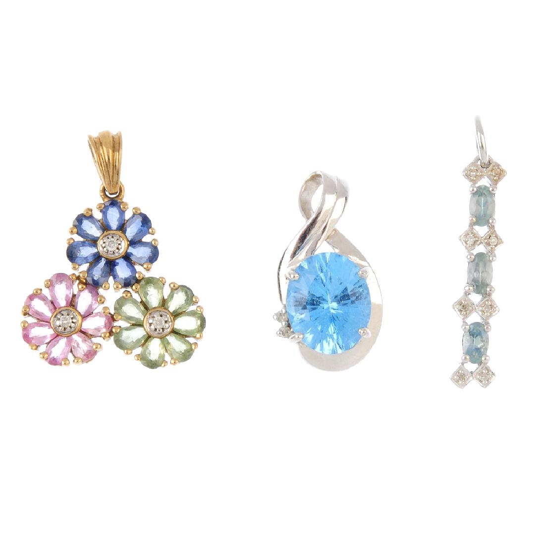 Three gem-set pendants. To include a 9ct gold topaz