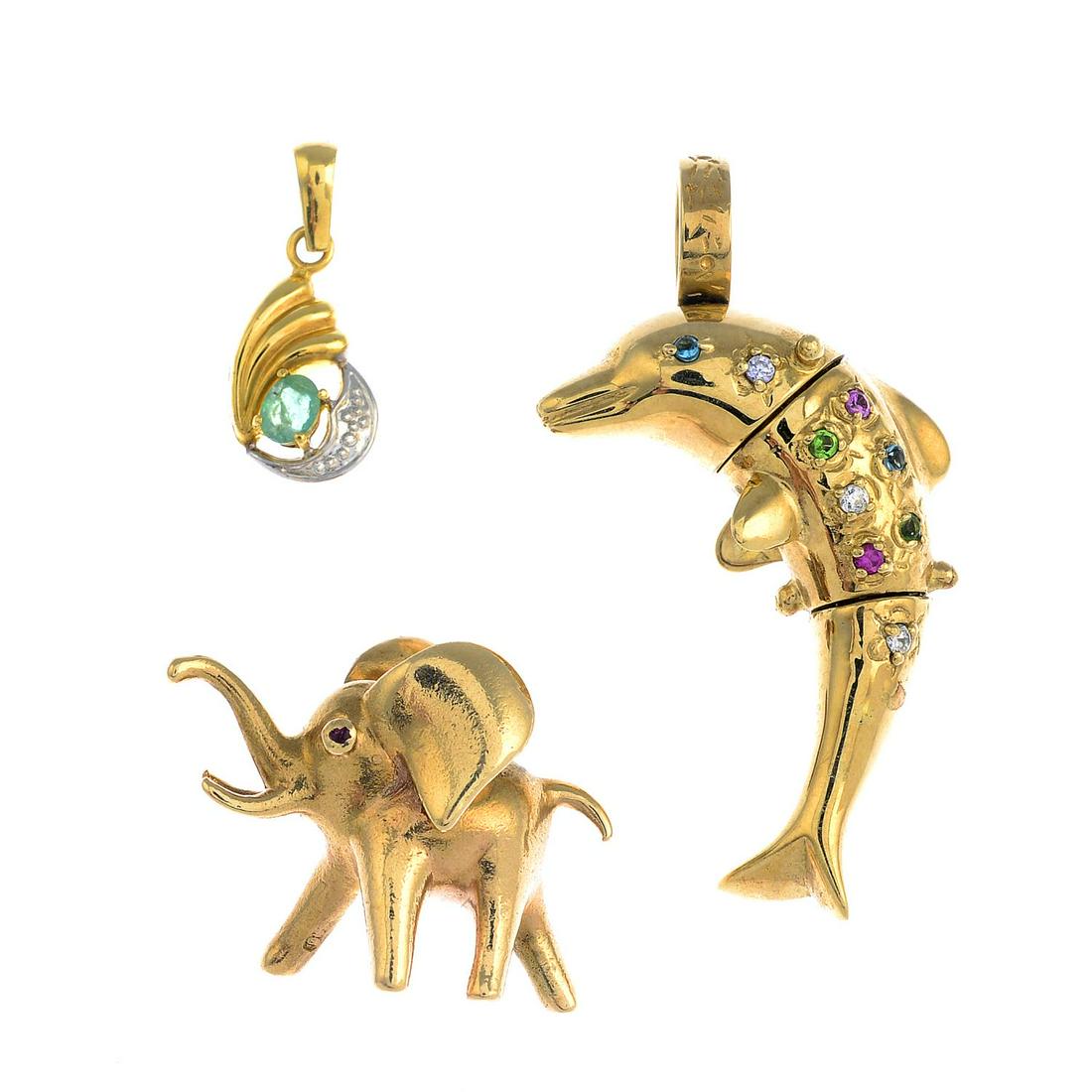 Three gem-set pendants, to include emeralds, rubies,