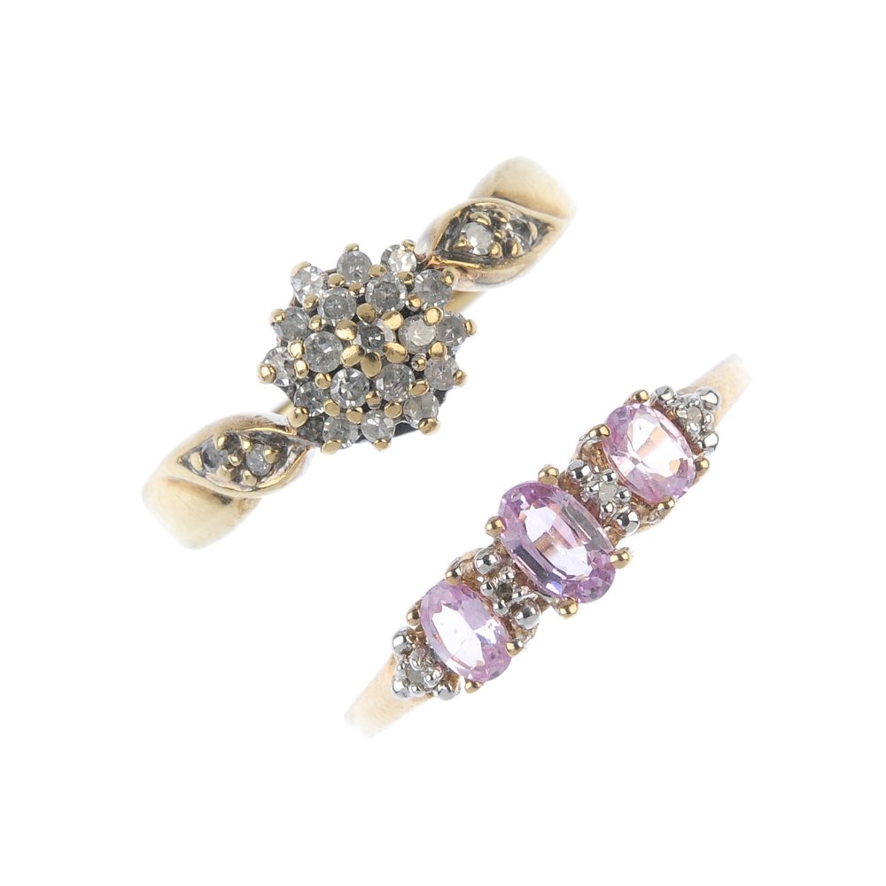 Three gem-set rings and a gem-set floral cluster