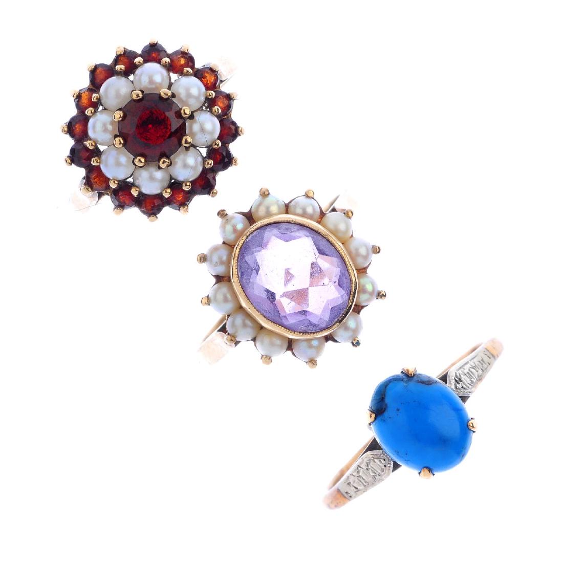 Three gem-set rings. To include a 9ct gold amethyst and