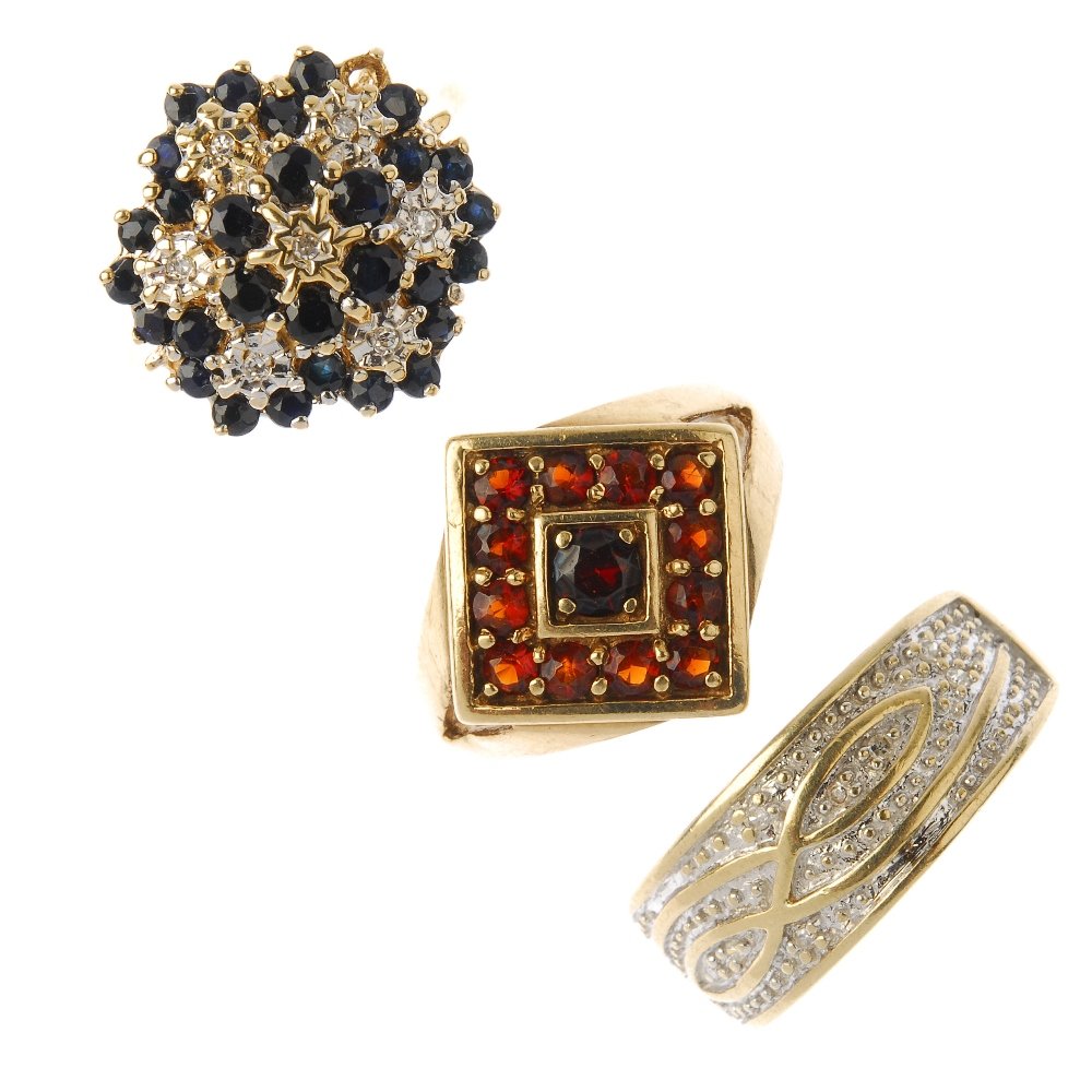 Three gem-set rings. To include a 9ct gold diamond