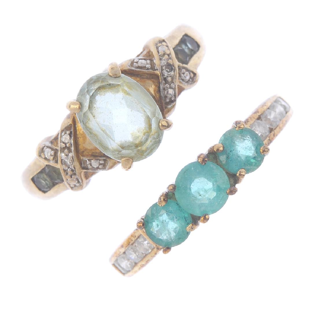 Three gem-set rings. To include a 9ct gold emerald and