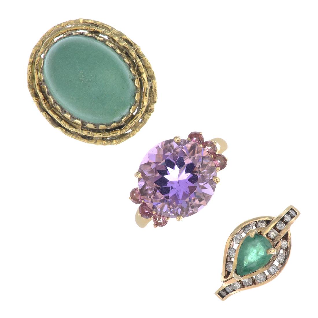 Three gem-set rings. To include an emerald and diamond