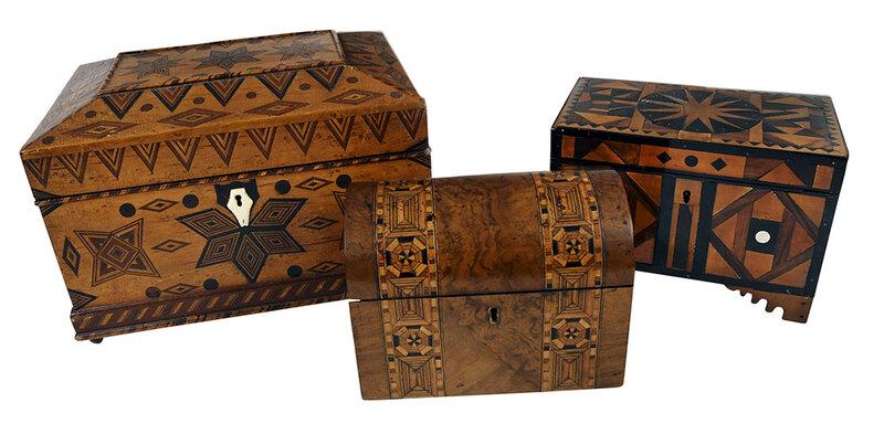 FOUR AMERICAN WOOD BOXES, INCL. MAHOGANY AND MARQUETRY EXAMPLE. Largest, 4.5''h. 9.25" w. 4.5''d.Amelia Jeffers, Auctioneers & Appraisers4.6(180)$150(2 bids)2 days Left