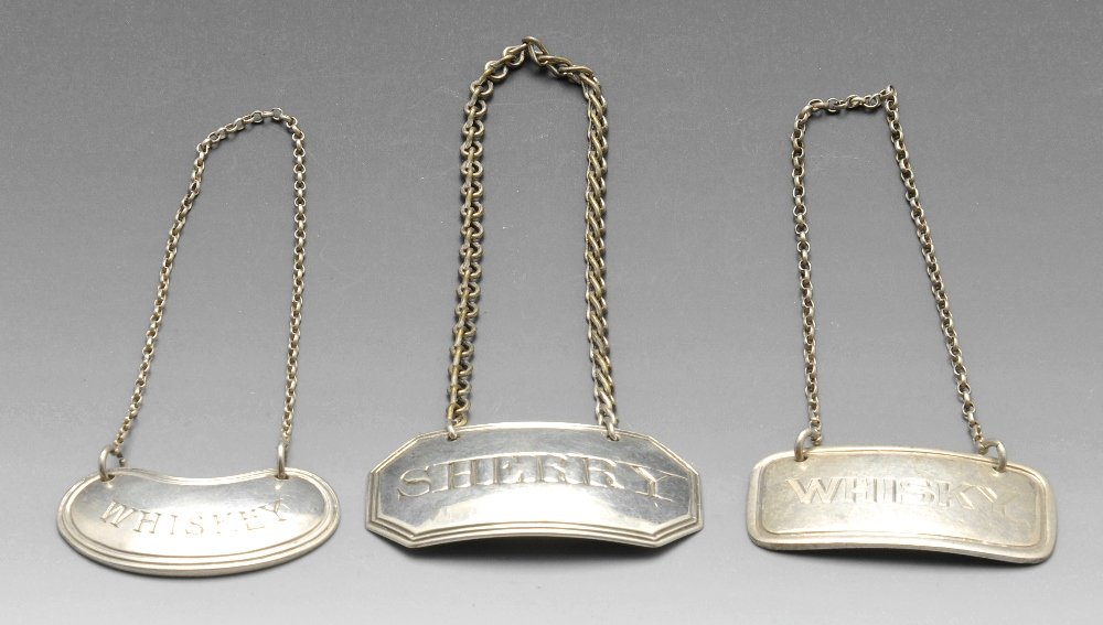 Three Georgian and later silver wine labels.