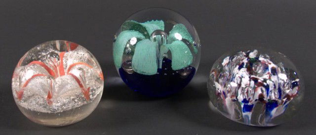 Three Glass Paperweights All with air bubble decor