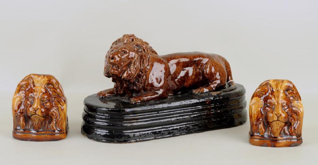 Three Glazed Terra Cotta Lion Figures