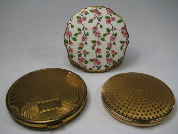 THREE GOLD TONE METAL COMPACTS STRATTON, HUDNUT