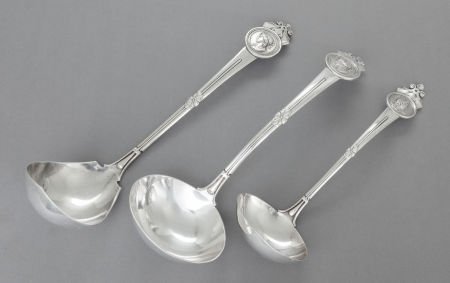 THREE GORHAM MEDALLION PATTERN SILVER LADLES WIT