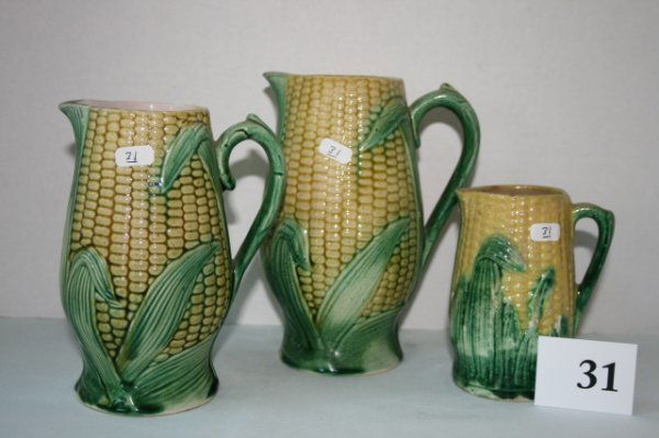 Three graduated corn pattern pitchers